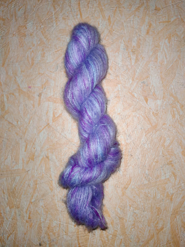 Cette base est incroyablement douce, légère et luxueuse, offrant une texture soyeuse et une brillance naturelle. Ce fil procure une chaleur délicate tout en étant aérien, parfait pour des pièces élégantes et raffinées comme des châles ou des accessoires. La taille de ce fil remplace parfaitement le kid mohair/soie (kid silk).